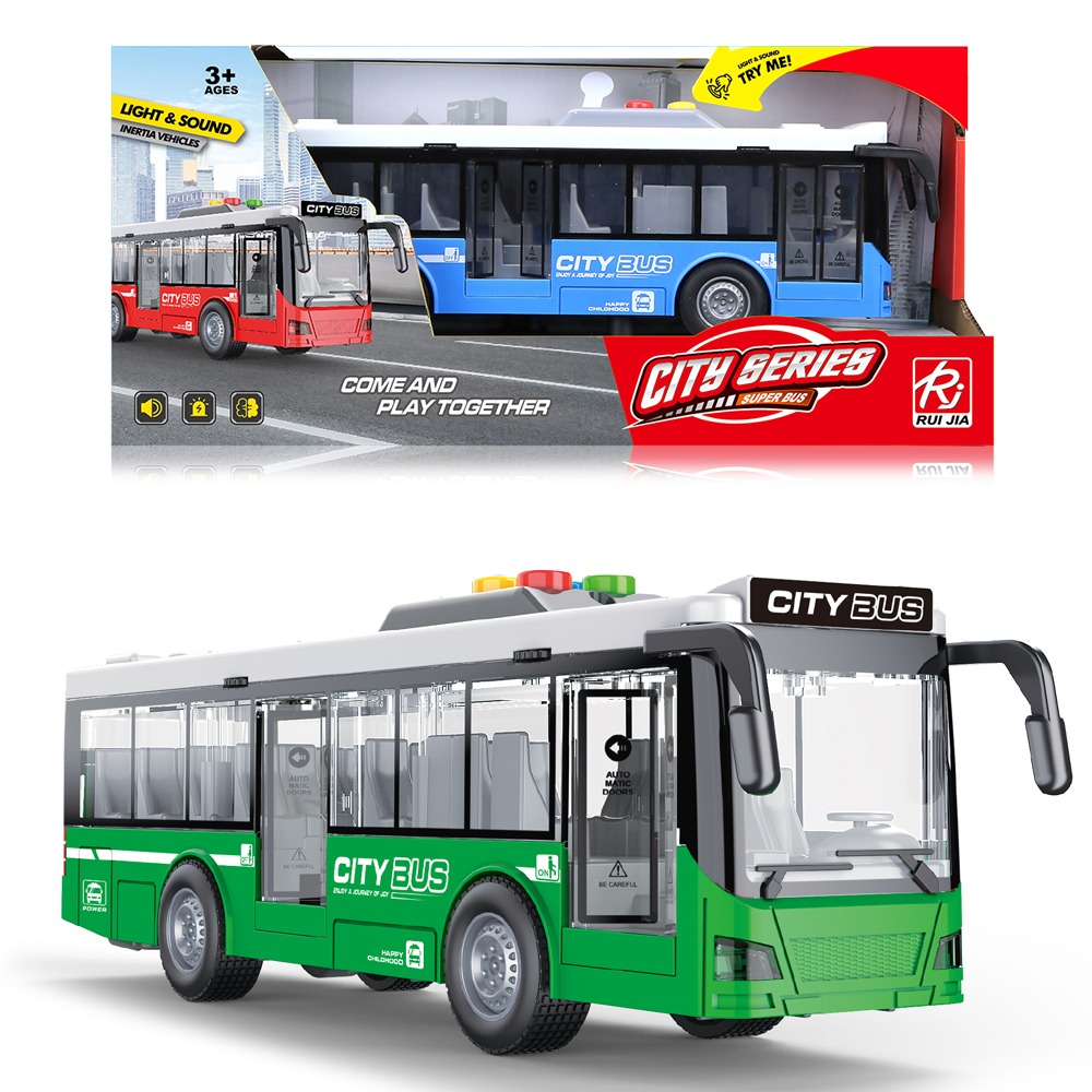 Autobus miejski Otwierane drzwi, światło, dźwięk Wymiary autobusu: 27.3×8.3×9.3 cm Wymiary opakowania: 32x10x14.5 cm Zasilanie: 3xAG13 (dołączone) Wiek:+3