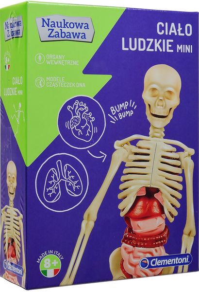 Realistyczny model ludzkiego ciała w prosty i przystępny sposób odkrywa anatomię człowieka. Zawiera: medele cząsteczek DNA, modele narządów i ludzkiego szkieletu. Aby odkrywać i uczyć się podczas zabawy.