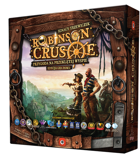Robinson Crusoe:Przygoda na przeklętej wyspie – Edycja Gra Roku to największy bestseller Portalu.W tej grze porywamy was na bezludną wyspę i rzucamy w wir niezwyklych przygód, które przytrafią się grupie rozbitków!Będziecie budować szalas, palisadę, bronie, będziecie tworzyć przedmioty, będziecie starać się robić co w waszej mocy, by… by przetrwać.Będziecie szukać pożywienia, walczyć z bestiami, chronić się przed złą pogodą… Wciel się w rolę jednego z czterech członków załogi statku (kucharza, stolarza, odkrywcy lub żołnierza) i staw oko przygodzie.Użyj zdolności, by pomóc kompanom, przedyskutuj plan działania i wciel go w życie! Szukajcie skarbów. Odkrywajcie tajemnice wyspy. Realizujcie cele jednego z sześciu pasjonujących scenariuszy.Zacznijcie od budowy i podpalenia stosu drewna, by wezwać pomoc, a następnie przejdźcie do kolejnych przygód.Zostańcie egzorcystami na przeklętej wyspie.