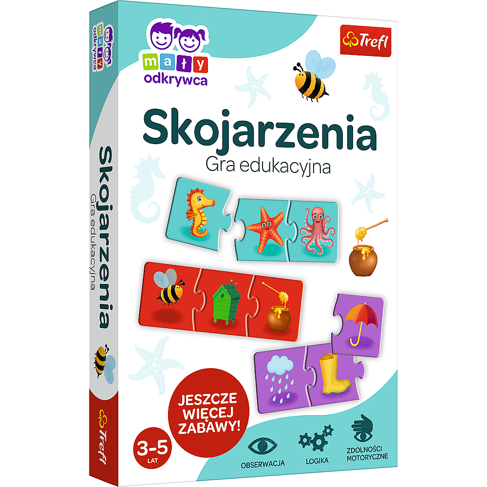 Skojarzenia to wyjątkowa układanka dydaktyczna dla przedszkolaków – uczy nazywania i klasyfikowania przedmiotów oraz zjawisk. Podczas wesołej zabawy, polegającej na łączeniu puzzlowych elementów, dziecko poznaje otaczający je świat.