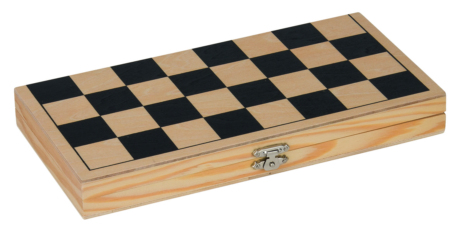 Starannie i estetycznie wykonane szachy dla dzieci. Drewniana szachownica składa się tworząc zamykaną szkatułkę, wewnątrz której znajdują się specjalne przegródki do układania drewnianych figur.