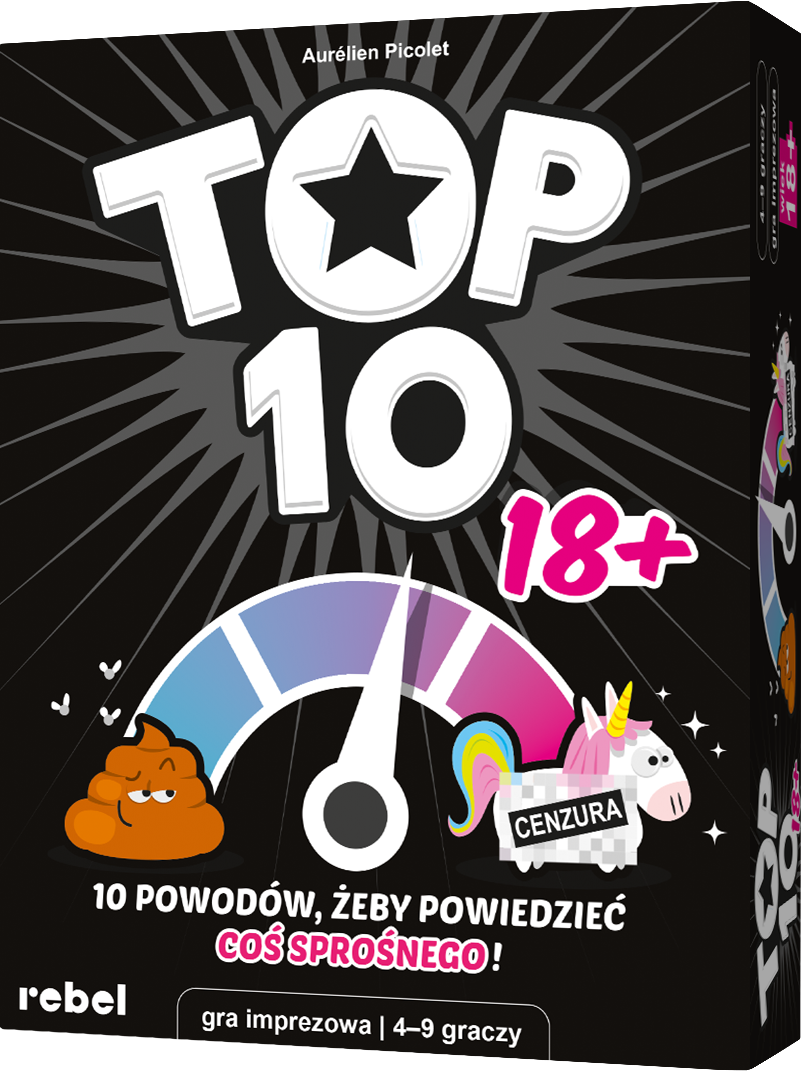 Współpraca, kreatywność i dobra zabawa to Twoje ulubione elementy, a do tego uwielbiasz czarny humor i nieprzyzwoite żarty? Zbierz znajomych i spróbujcie swoich sił w nowej wersji  Top 10, przeznaczonej dla dorosłych! To niebanalna gra skojarzeń, w której będziecie mogli puścić wodze fantazji (i inne hamulce), dążąc do wspólnej wygranej.