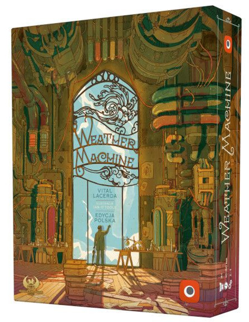 Weather Machine to ogromna, rozbudowana euro gra dla bardzo doświadczonych graczy.Została zaprojektowana przez żyjącą legendę, Vitala Lacerde (On Mars, Kanban EV) i przeniesie was do stacji meteorologicznej, gdzie profesor Seni Lativ stworzył maszynę zdolną sterować pogodą. Przy wykorzystaniu mechanik worker placement, tile placement i set collection staniecie się naukowcami, których zadaniem będzie utrzymanie idealnej pogody w każdym z doglądanych miejsc. Farmy potrzebują czasami deszczu, a w kurortach powinno wiecznie świecić słońce. Jednak pogoda w jednym miejscu wpływa na inne, a pozornie nieistotna decyzja może przybrać katastrofalny w skutkach efekt motyla. Generator pogody, choć jest genialną maszyną, posiada swoje wady, które wy musicie wyeliminować, za co też otrzymacie Nagrody, a może nawet Nagrodę Nobla! Podobnie jak w poprzednich projektach Lacerdy, tak i tutaj zetkniecie się z artystycznym dziełem sztuki. Duża kolorowa plansza, kilkadziesiąt customowych meepli robotów, a do tego drewniane tokeny ksiąg, które zastąpiły zwykłe tekturowe żetony.