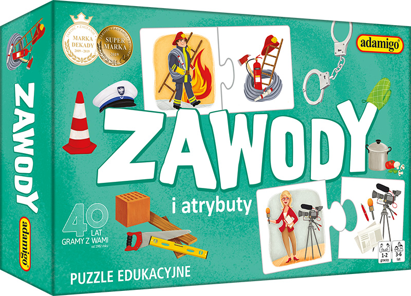 Co robi pielęgniarka? Czym posługuje się strażak w codziennyhc obowiązkach?Sięgnij po zawody i ich atrybuty i poznaj każdy z nich! Puzzle to idealna propozycja jako wstęp do poznania różnych karier. Zestaw zawiera 24 puzzle, z których można ułożyć 12 obrazków przedstawiających zawody i atrybuty.