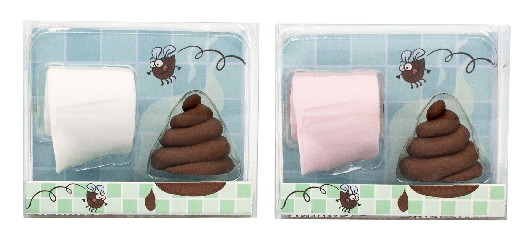Gumki do ścierania – po prostu zabawna.Śmieszny zestaw gumek składający się z rolki papieru toaletowego i kupki. Dostępny w 2 różnych kolorach.