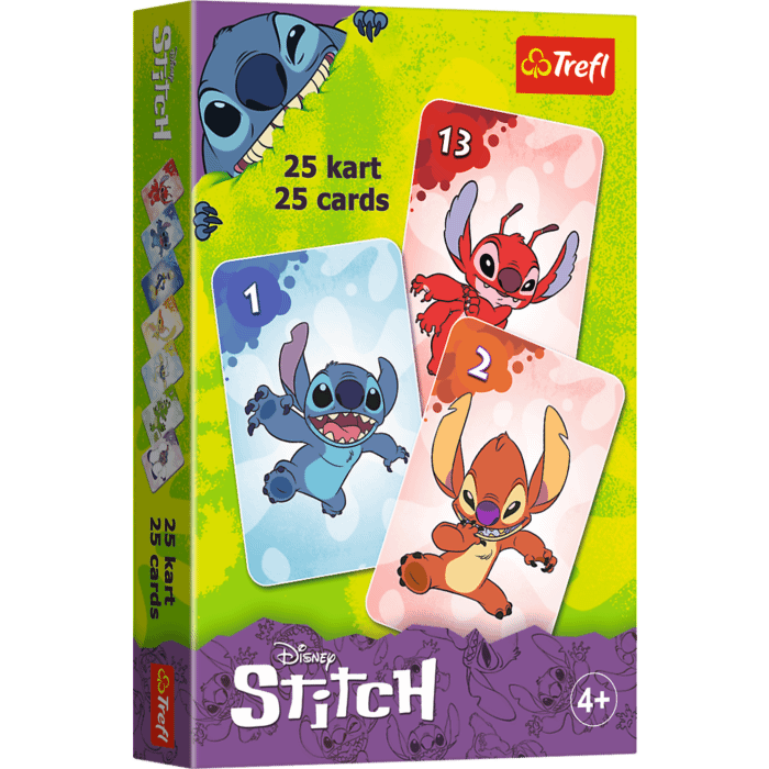 Karty „Piotruś” Stitch to  gra karciana którą znają wszystkie polskie dzieci.Proste zasady oraz szybka, emocjonująca rozgrywka to powody jej popularności.Jeśli dodać do tego karty z wizerunkami najbardziej popularnych postaci z bajek, kreskówek, komiksów i filmów otrzymujemy produkt, który kochają wszystkie dzieci.Wiek:+4