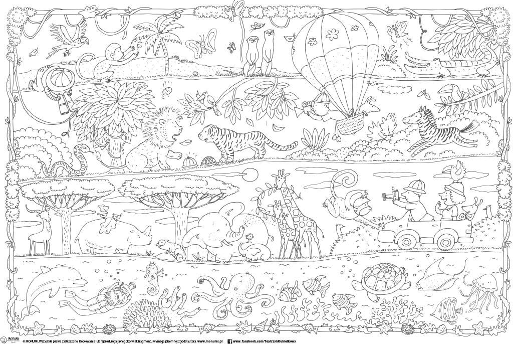 Kolorowanka podłogowa o wymiarach 120×80 cm, do kolorowania flamastrami, kredkami i farbami.