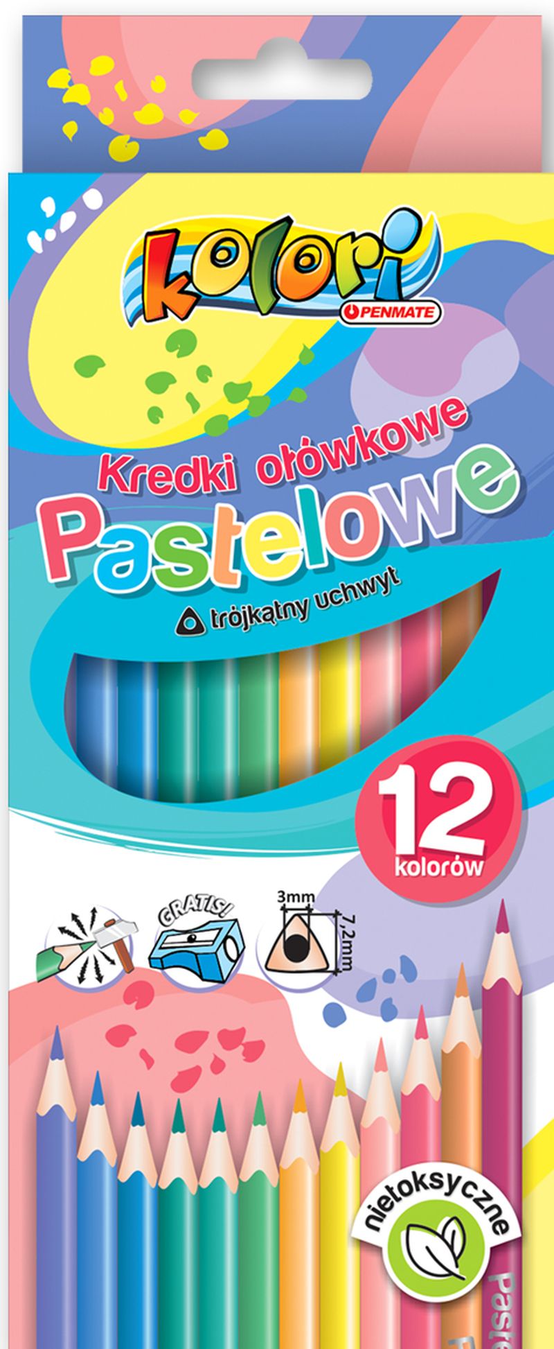 Strona główna > Wszystkie produkty > Kredki ołówkowe trójkątne pastelowe Penmate Kolori Premium 12 kolorów + temperówka TT8308