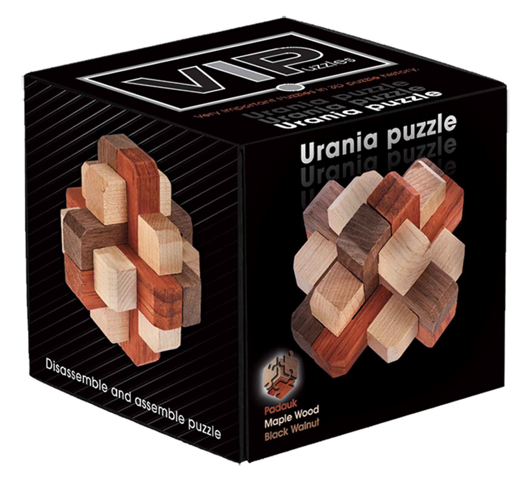 Seria VIP jak sama nazwa wskazuje, to łamigłówki z najwyższej półki, tzw. produkt premium. Z dwóch powodów. Po pierwsze, seria VIP to lekcja historii. Każda z sześciu łamigłówek powstała wiele lat temu. Mamy tutaj przedstawicieli XX-go, XIX-go, a także XVIII-go wieku. Po drugie, bardzo wysoka jakość. Wszystkie łamigłówki wykonane są ze specjalnych gatunków drewna, takich jak: czerwony paduk, czarny orzech i biały klon.Eureka 3D Puzzle jest cenionym producentem łamigłówek w Europie.Różnorodny asortyment, niezmienna dbałość o wysoką jakość wykonania oraz duża troska o estetykę i wartość intelektualną oferowanych produktów zjednały firmie uznanie na całym świecie. Wszystkie prezentowane łamigłówki świetnie sprawdzają się w zróżnicowanym towarzystwie. Bawią, uczą, zmuszają do myślenia i uwolnienia twórczej wyobraźni. Pozwalają na znalezienie „wspólnego języka” ludziom w różnym wieku i stają się początkiem wielkiej pasji, często łącząc całe rodziny wokół wspólnego hobby. ZAWARTOŚĆ: 1 szt. łamigłówki (12 elementów wymiary: 90x90x90 mm)