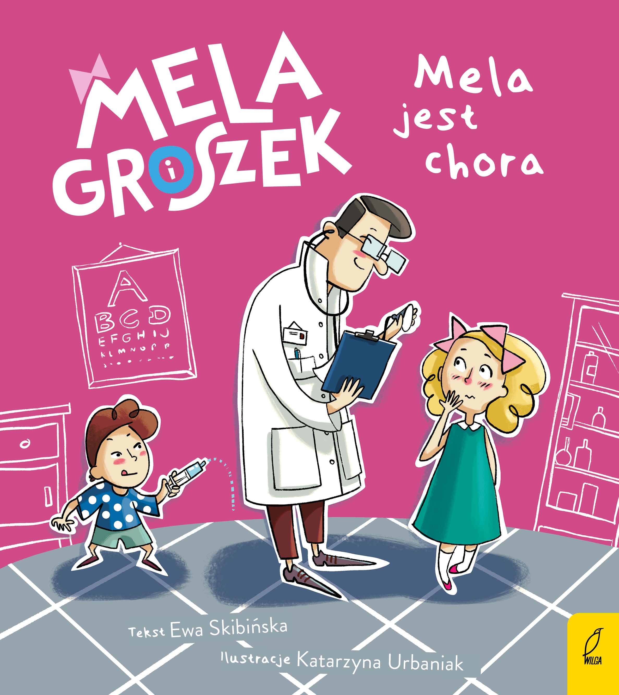 Mela kaszle i kapie jej z nosa. Jest nieszczęśliwa, nie ma apetytu, boli ją głowa. Okazuje się, że Mela musi iść do lekarza. Gdzie? Do tego siedliska zarazków? Co na to wszystko lekarz? I czy Meli uda się wyzdrowieć pod opieką rodziców? Jedno jest pewne – Groszek jest szczęśliwy, że siostra zostanie w domu i w końcu będzie miała czas się z nim bawić!