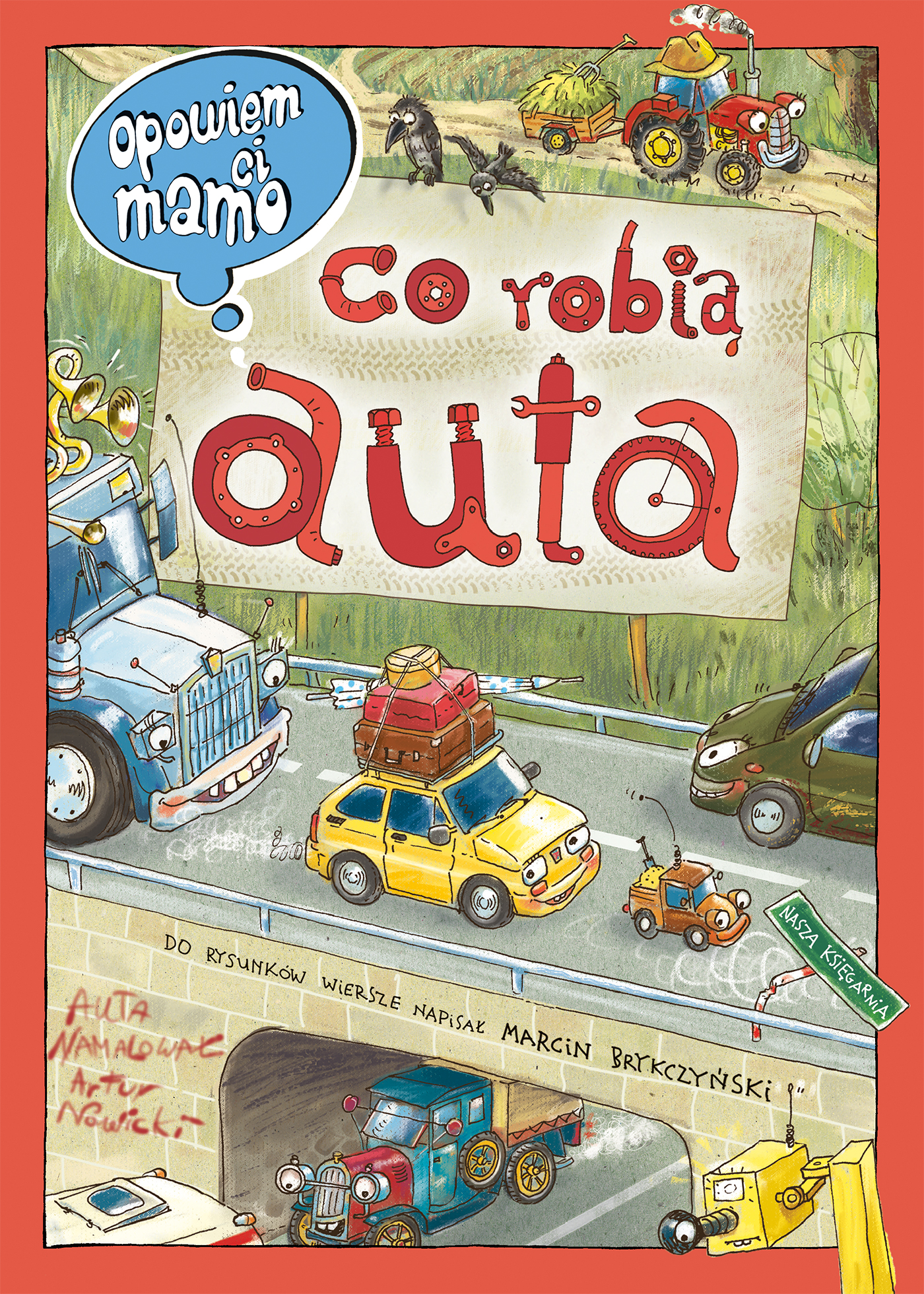 Jakie samochody pracują w mieście, a jakie na wsi? Co kryje w sobie wnętrze samochodu? Jakie pojazdy ścigają się po torze wyścigowym, a jakie pracują na placu budowy? Dlaczego w warsztacie samochodowym jest taki bałagan? Co robią samochody zimą, a co w lecie? Gdzie można spotkać najnowsze i najpiękniejsze modele samochodów? Odpowiedzi na te i inne pytania dotyczące bogatego świata pojazdów dużych i małych znalazły się w tej niezwykłej książce narysowanej z humorem przez Artura Nowickiego.