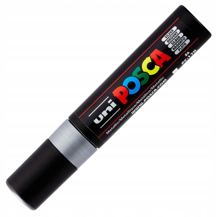 Uniwersalny marker UNI PC-17K z wodnym tuszem pigmentowym do pisania i malowania po każdej powierzchni: papierze, tkaninie, plastiku, terakocie, szkle, porcelanie, metalu, drewnie • odporny na działanie światła i warunków atmosferycznych • tusz na bazie wody nie przesiąka przez papier • różne kolory tuszu po wyschnięciu nie łączą się ze sobą• ścięta końcówka – grubość linii pisania: 15 mm.