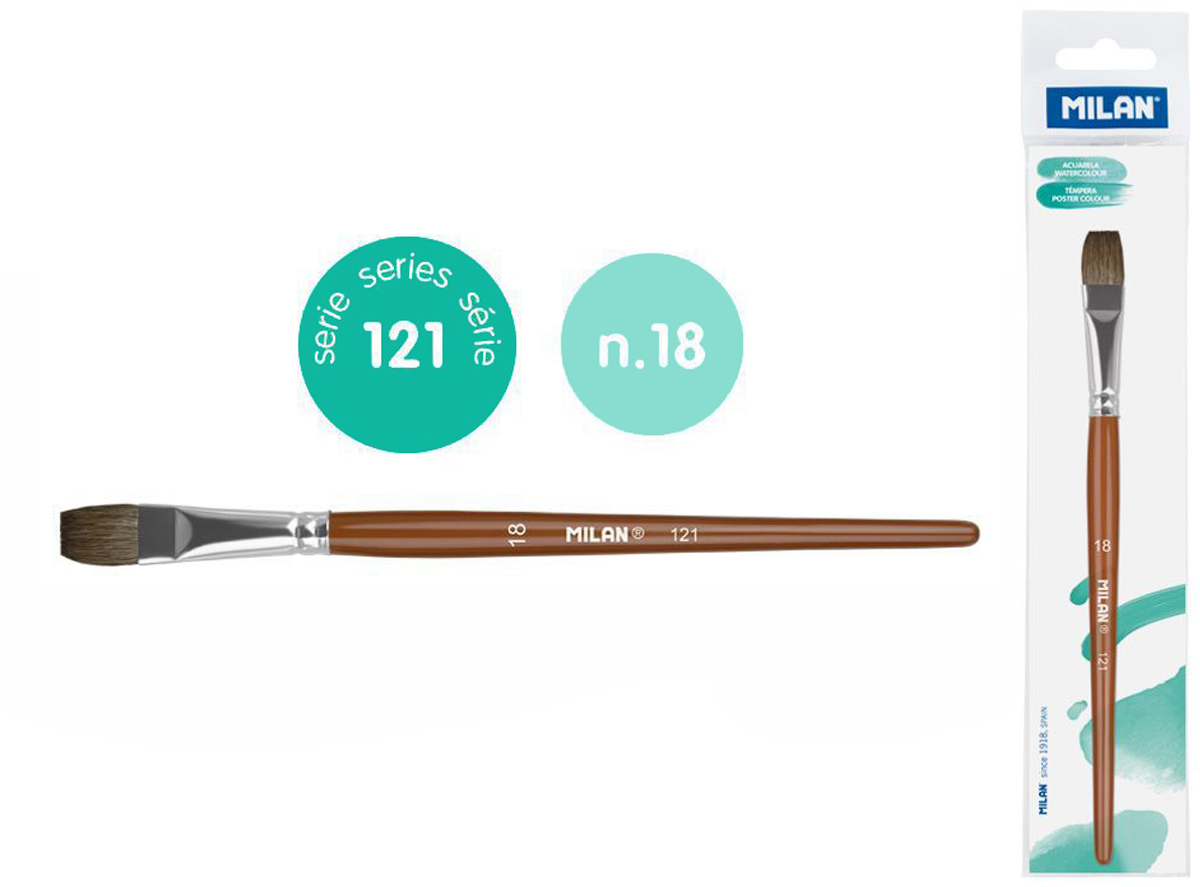 Pędzel płaski z włosia koziego seria 121 nr 18 Milan 1 szt. na blistrze