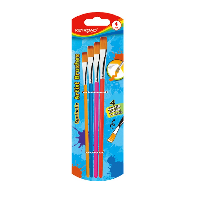 Pędzle syntetyczne dla małych artystów, 4 sztuki na blistrze.