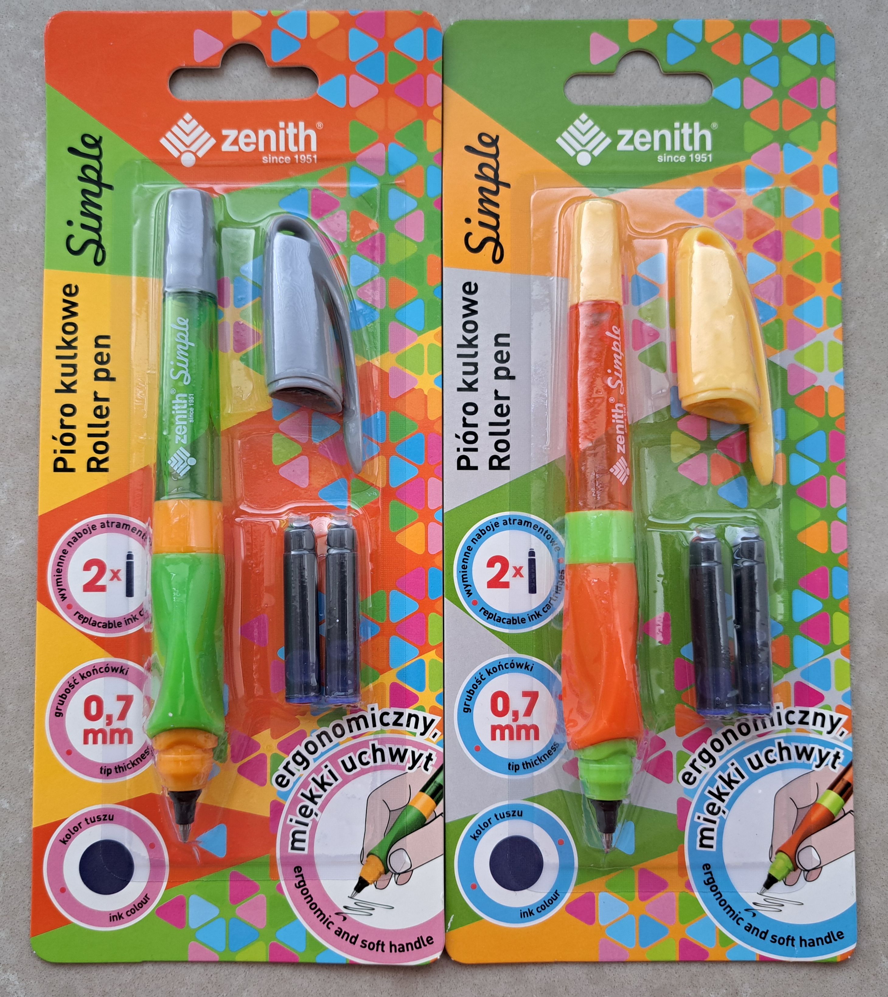 Pióro wieczne SIMPLE z ergonomicznym uchwytem.Stalówka zakończona irydową końcówką.Miękki trójkątny uchwyt.Wymienne naboje atramentowe.Kolor tuszu niebieski.W zestawie dołączone zostały 2 naboje atramentowe.