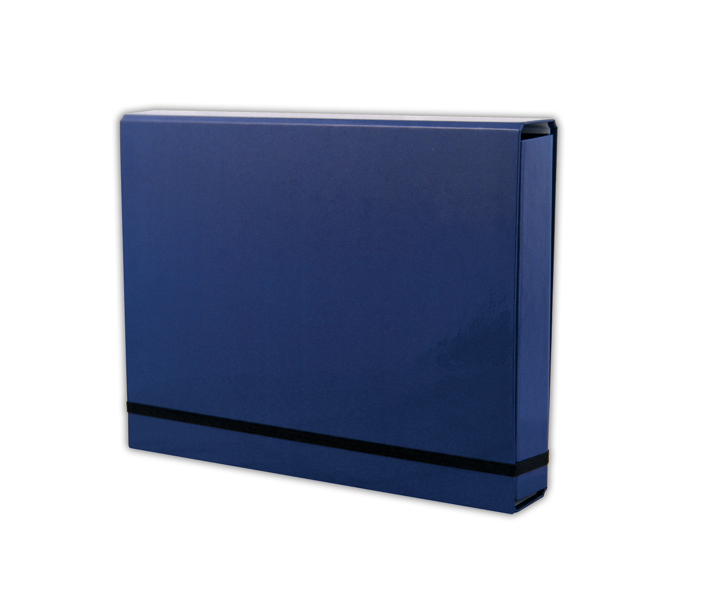 Teczka wykonana z tektury 1,7 mm. Boki z okleinowanymi krawędziami, zapinana na płaską gumkę o szerokości 7 mm. Uszlachetniona błyszczącą folią polipropylenową. Standardowe i pastelowe kolory okleiny.Wymiary w cm: 32 x 23,5 x 4,5.