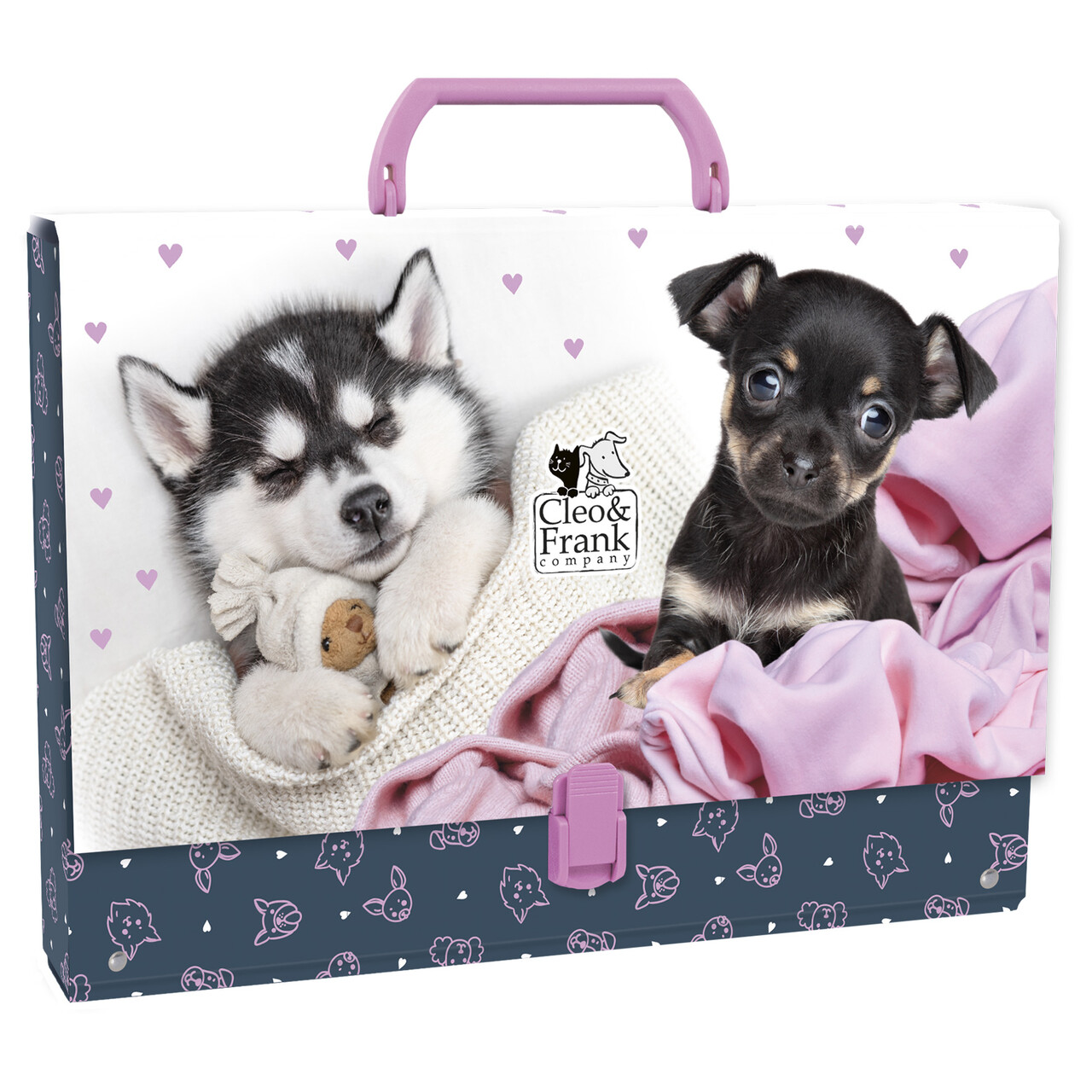 Wykonana z twardej, laminowanej tektury teczka z wygodną do przenoszenia rączką.
